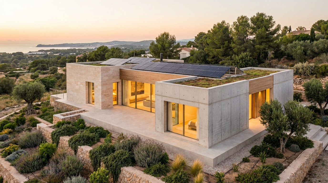 El uso de madera certificada, hormigones con aditivos de bajo carbono o aceros reciclados son ejemplos de decisiones que reducen emisiones. Un diseño eficiente combinado con sistemas renovables baja aún más la huella total.