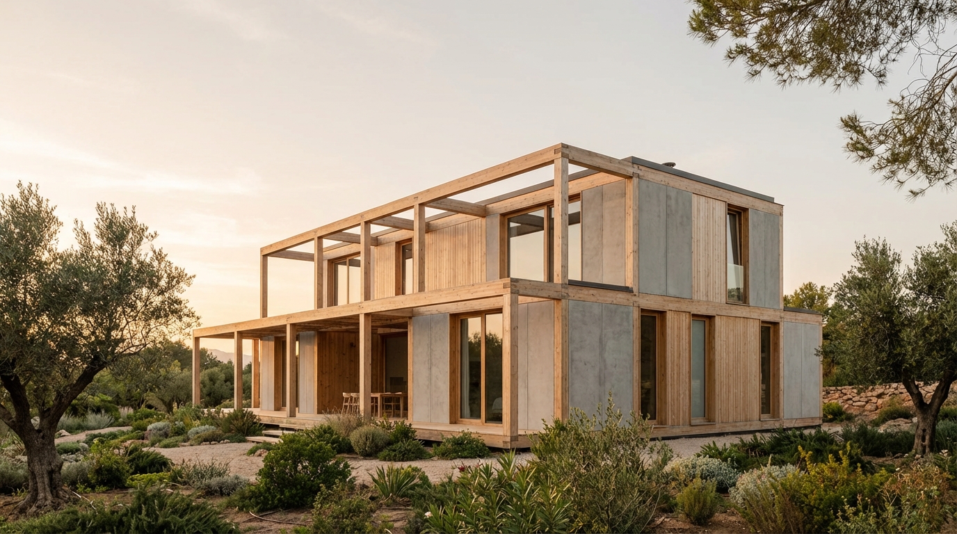 Consejo accionable: combine materiales por zonas (p. ej., estructura de steel frame + cerramiento de madera) para equilibrar coste, tiempo y estética mediterránea.