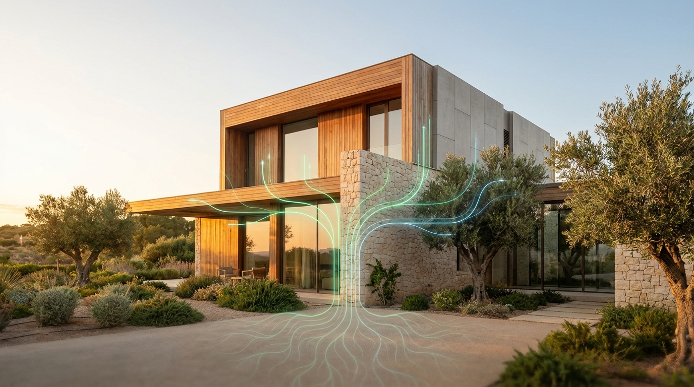 Además de materiales, el diseño es clave. Orientación, sombras móviles y envolventes eficientes reducen el consumo real. Sistemas pasivos combinados con renovables optimizan la energía en uso.
